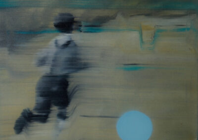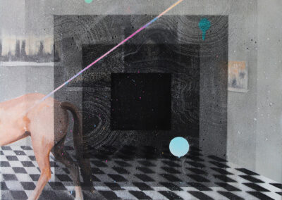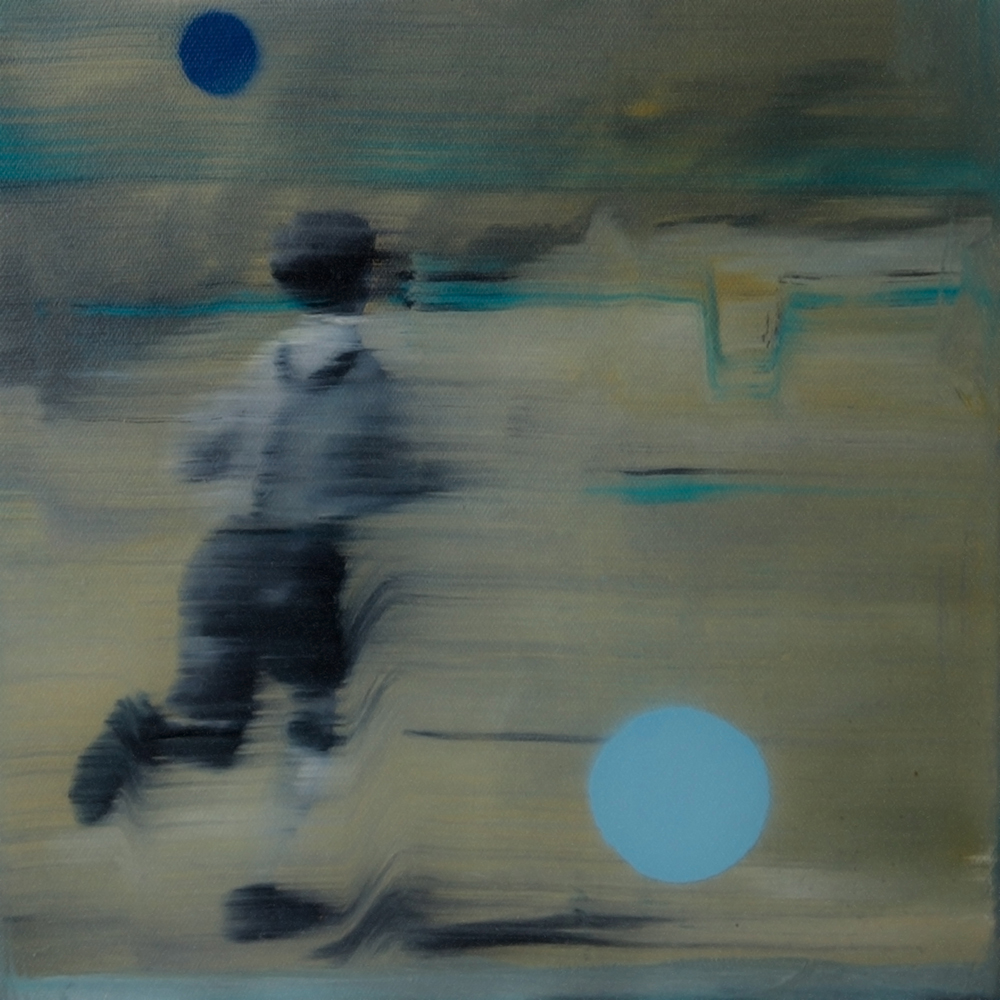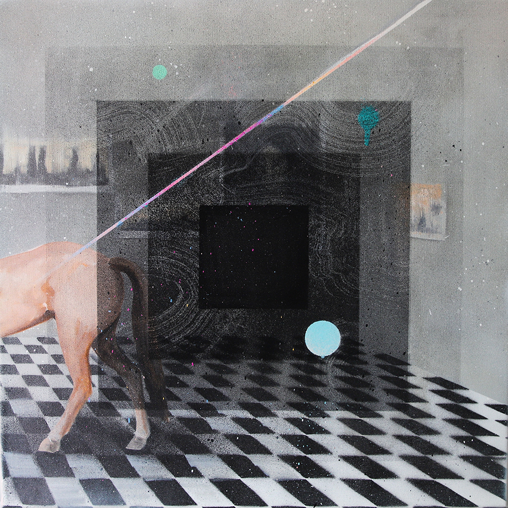 Din seria Circo[stanze] – Story time 1, ulei, spray pe pânză, 40×40, 2019
