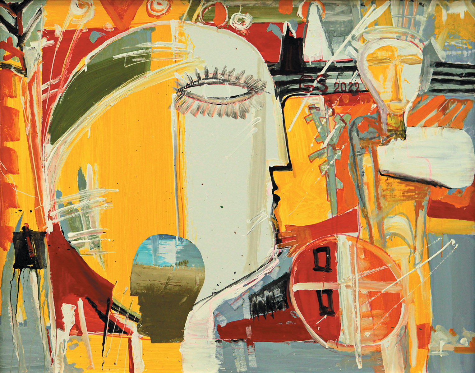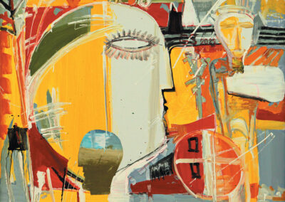 „Suntem unde am fost, am rămas unde suntem și punctum!”, 2022, acrilic, carton, 95×120 cm