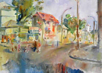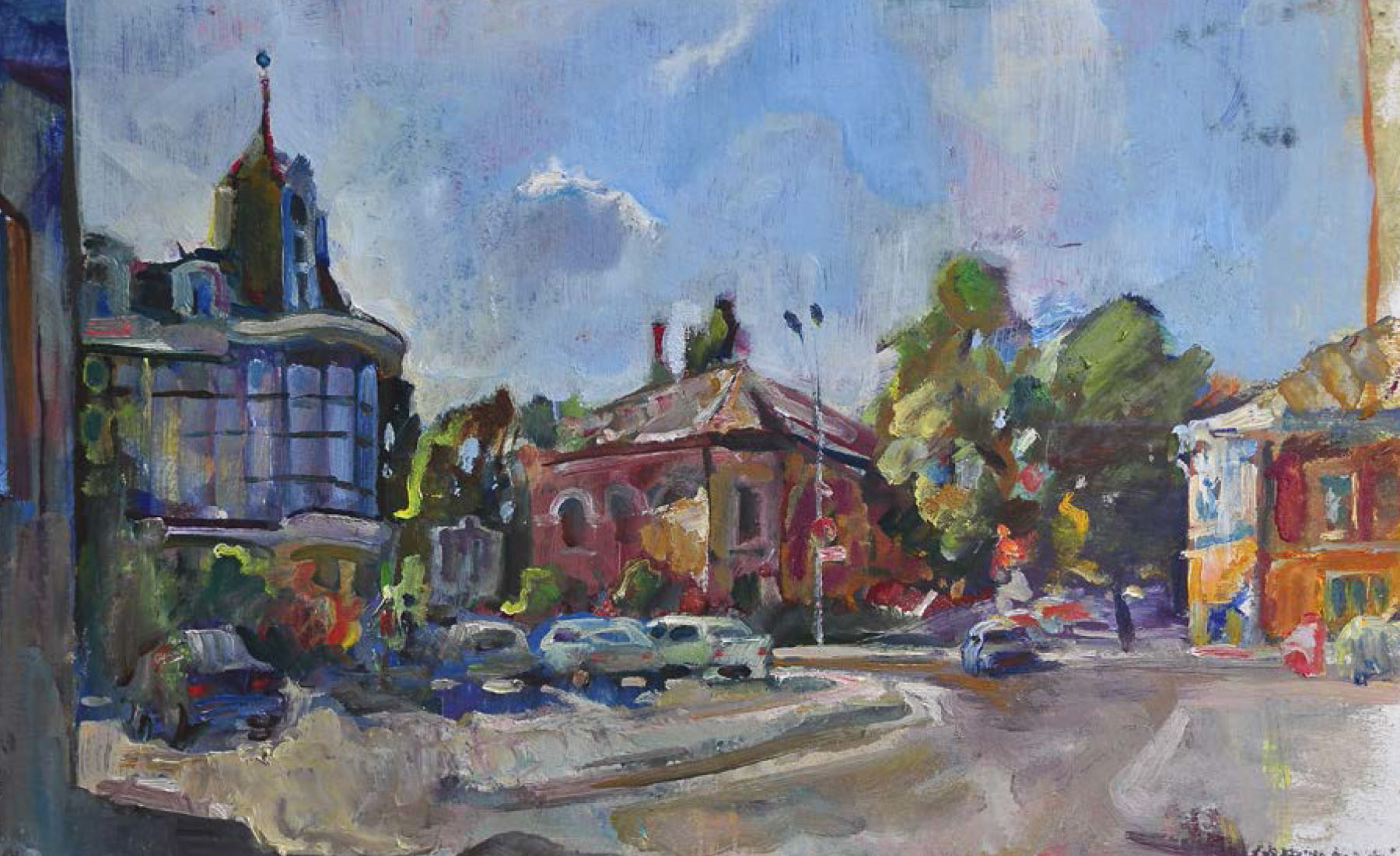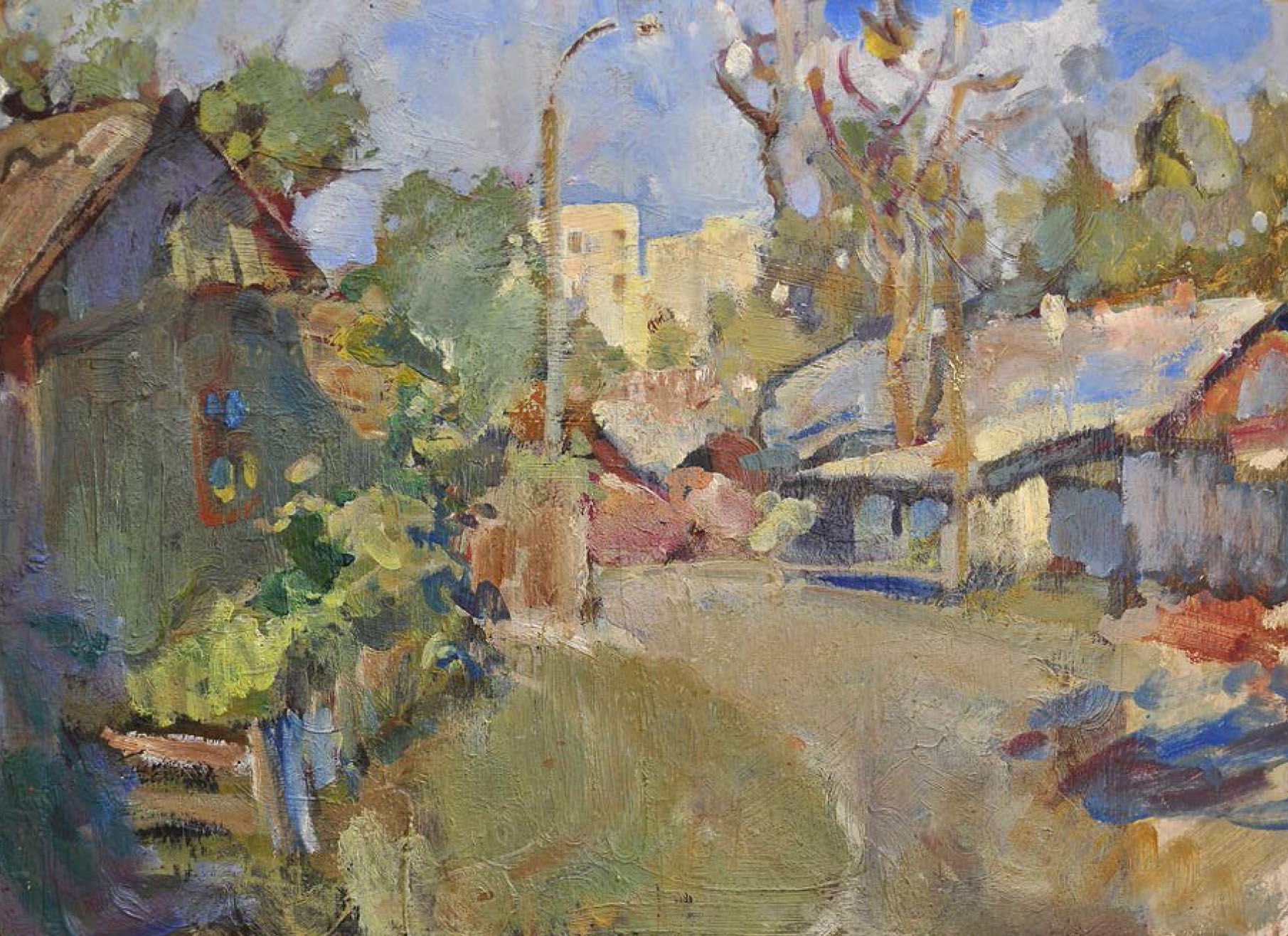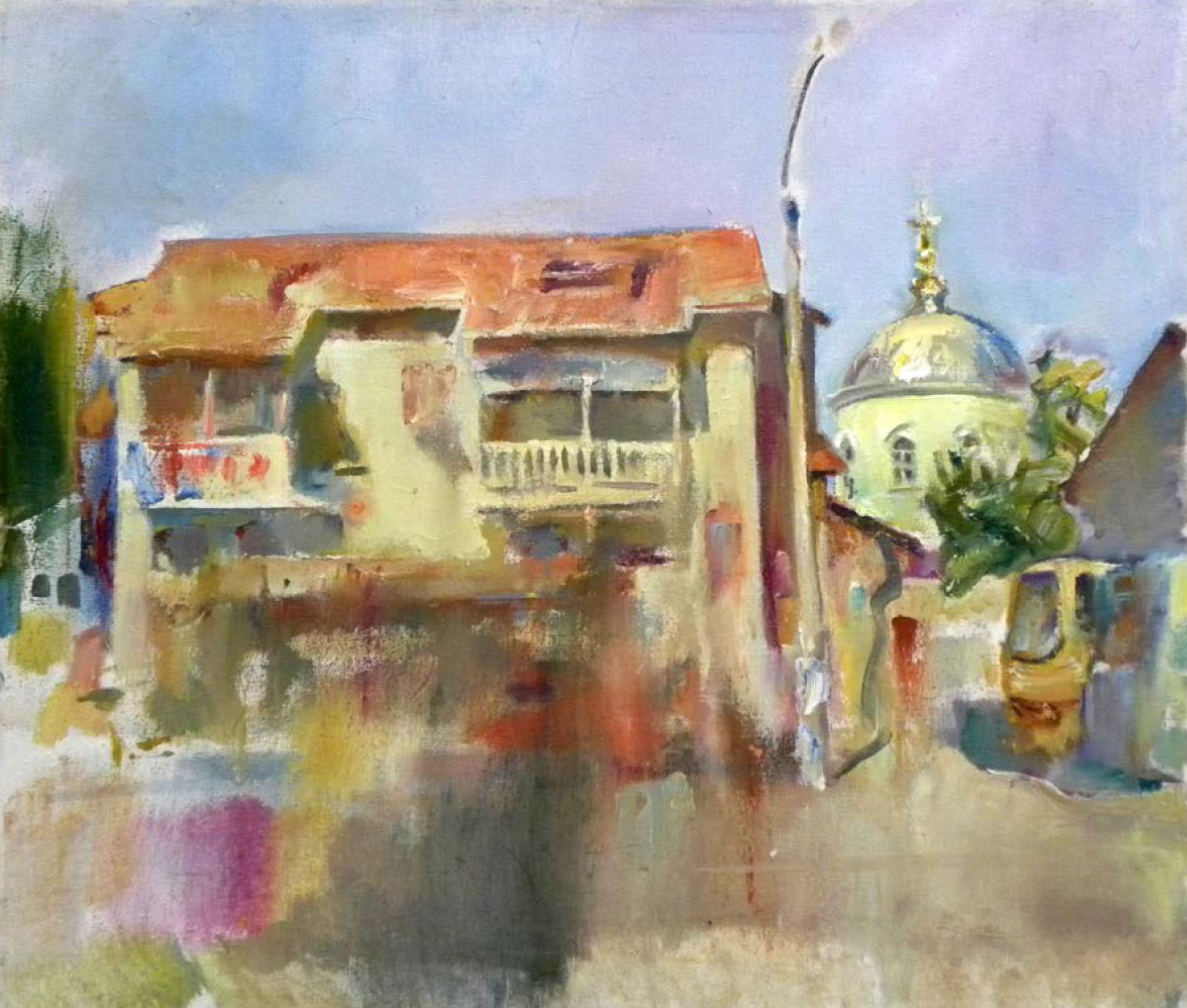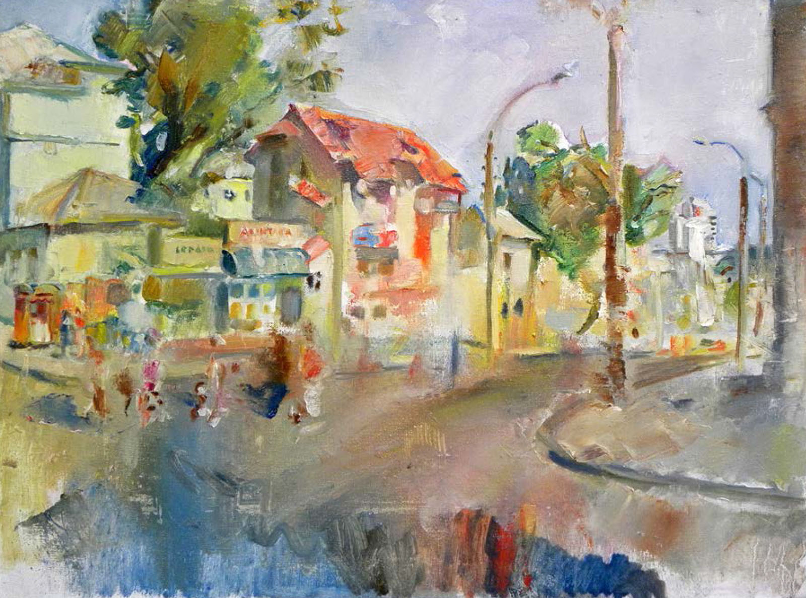Chișinau, str. Ion Doncev, anii 1990, ulei, pânza, 500×700 mm, colecția autorului