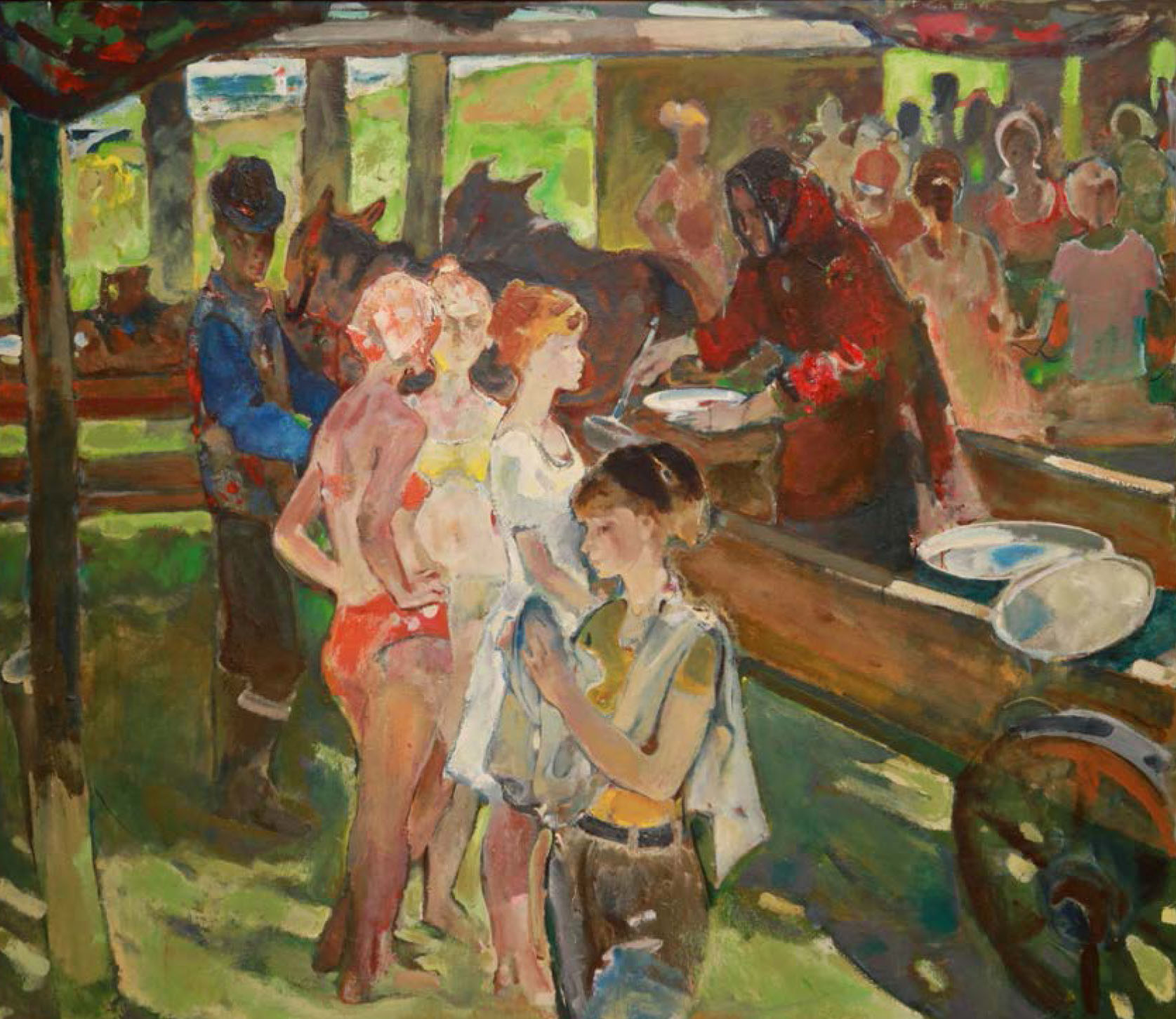 Detașament de construcție. Prânzul în câmp, 1984, 1600×1860 mm, MNAM
