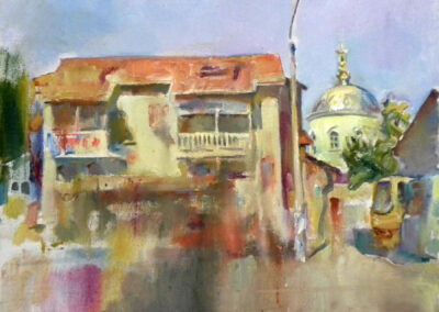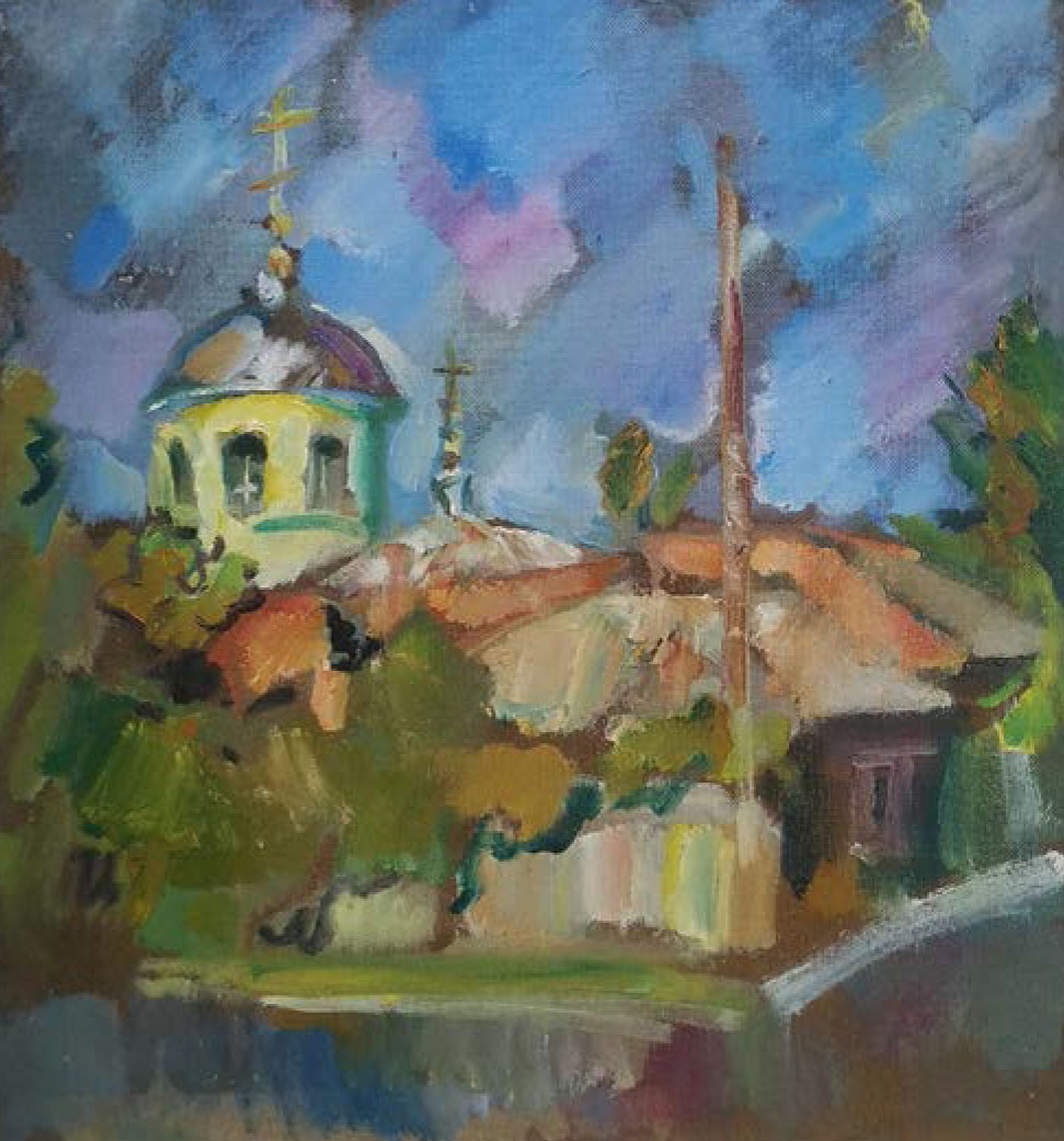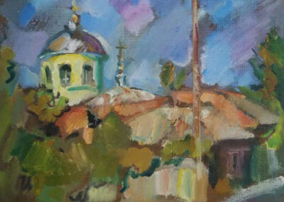 Chișinau, peisaj cu biserica, 2006, ulei, pânza, 600×600 mm, colecția autorului