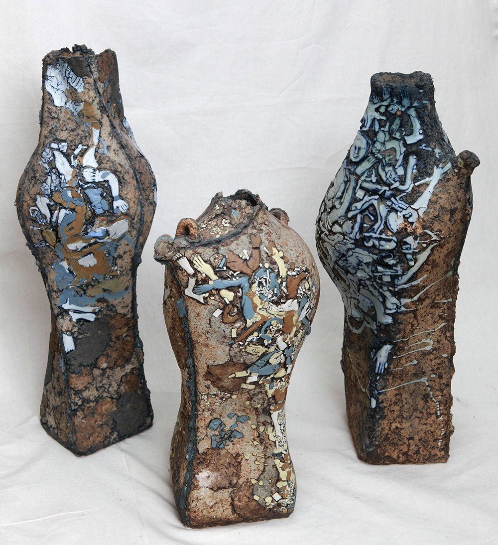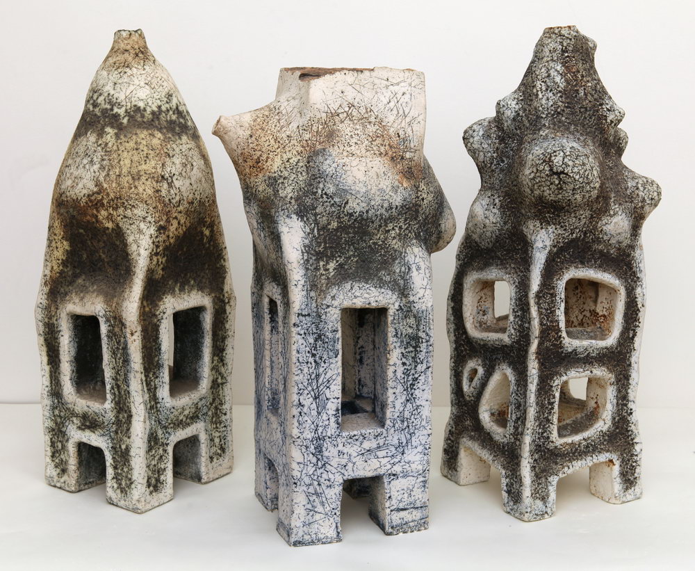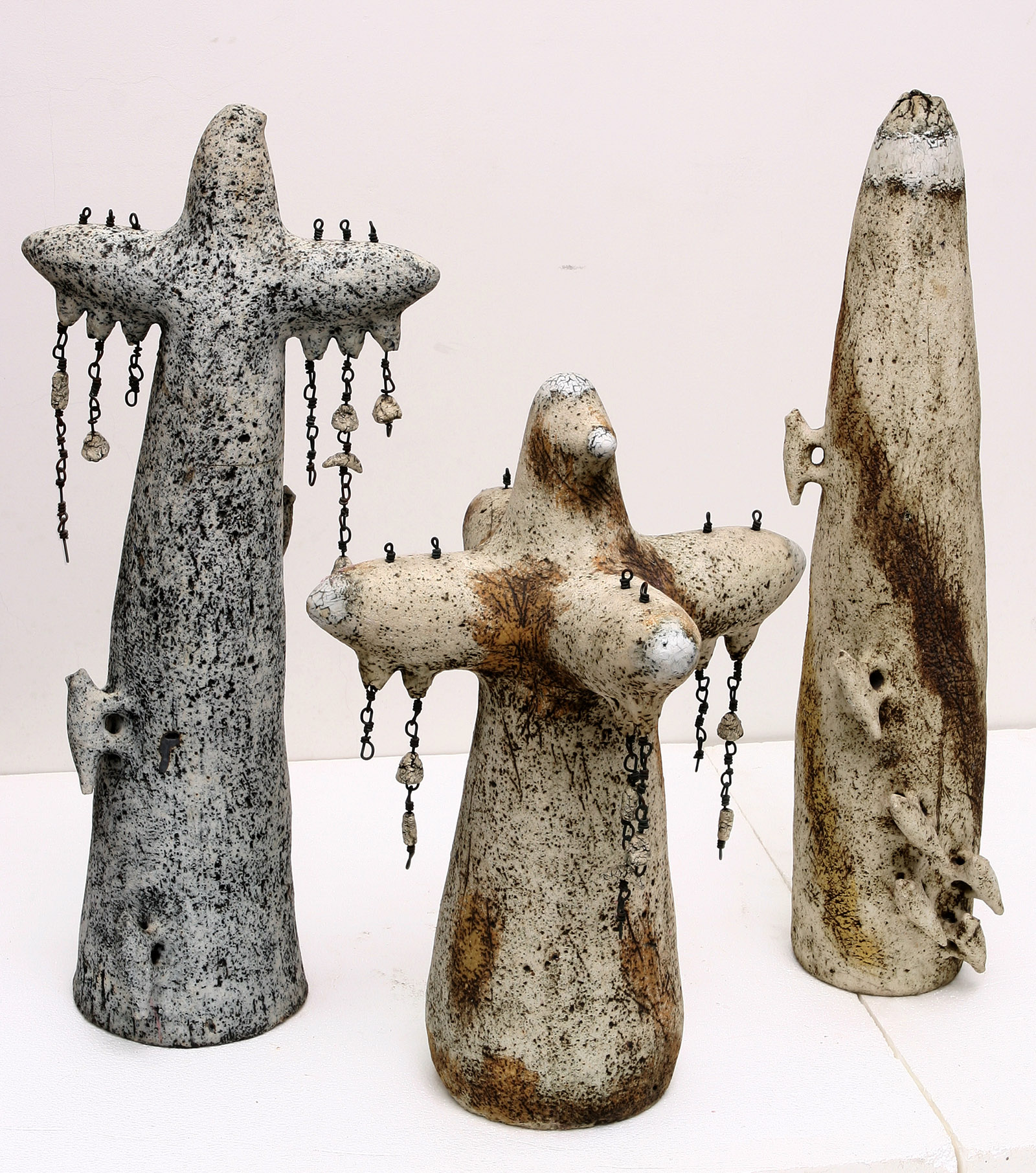 Toamnele (II), 1995, ceramică, șamotă, porțelan, oxizi, coloranți, 84×28×26 cm, 83×30×30 cm, 79×28×30 cm