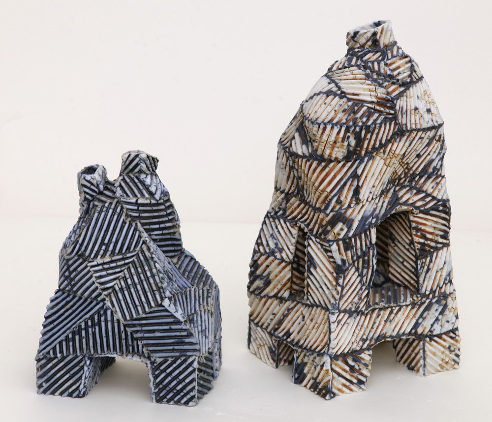 Promisiuni, 1996, porțelan, coloranți, 22×15×12 cm Munți, 1996, porțelan, coloranți, 34×20×15 cm