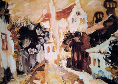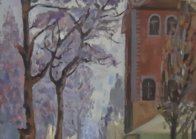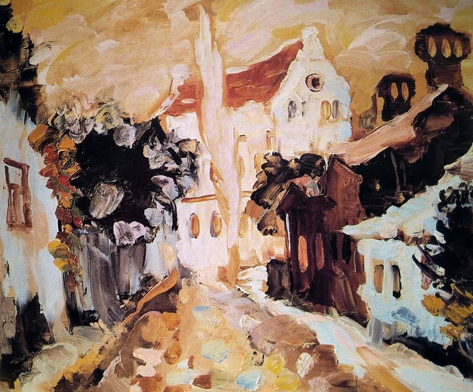Mihai Grecu, Chișinaul vechi, 1967, ulei, pânza, 800×1000 mm, Muzeul Național de Artă al Moldovei (MNAM).
