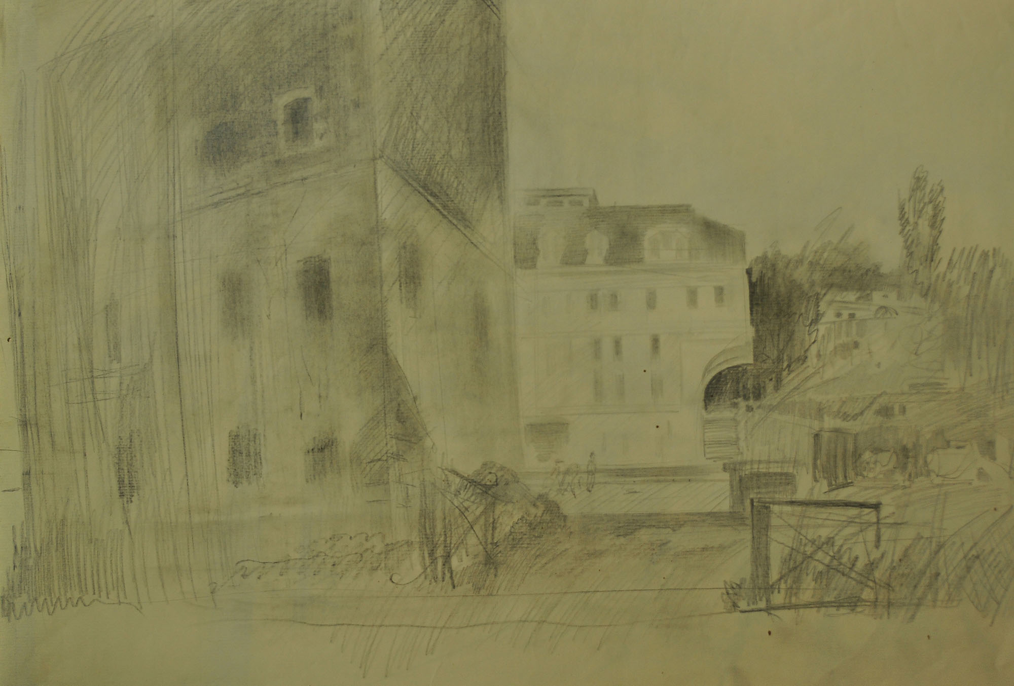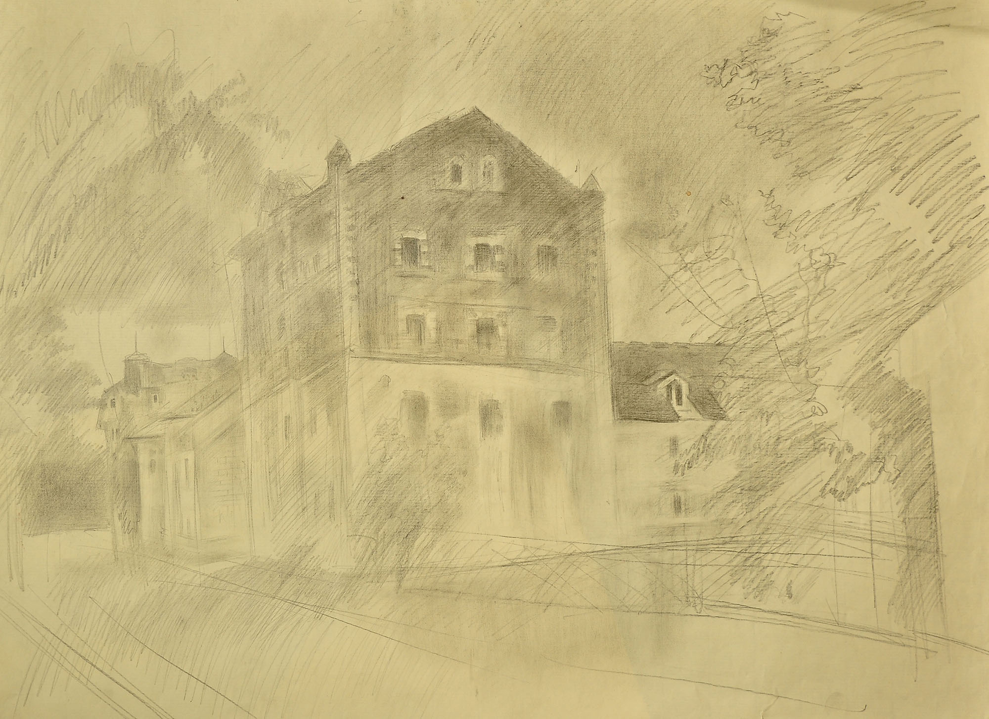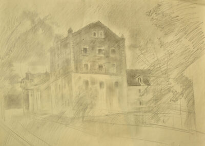 Ion Serbinov, Moara Roșie, 2002, hârtie, creion, 500×700 mm.