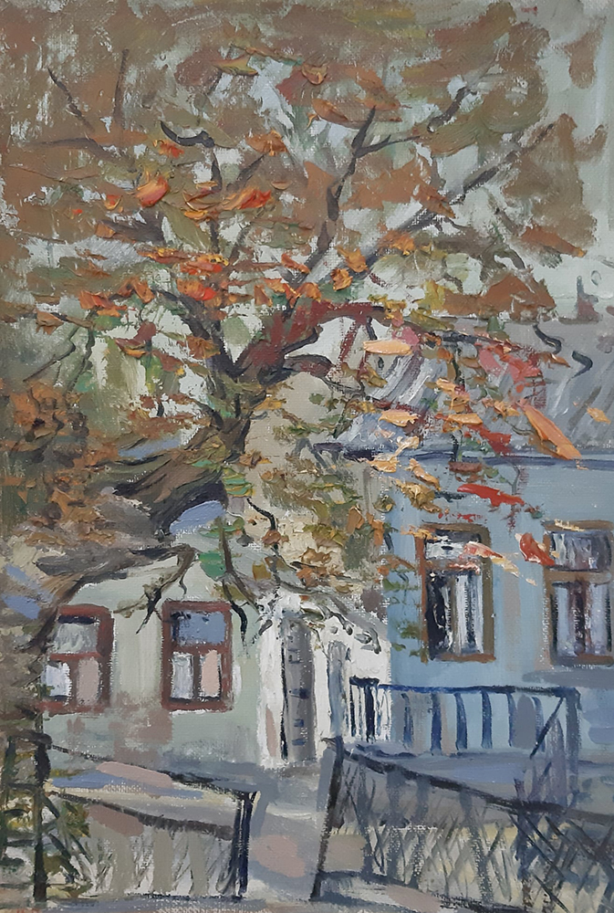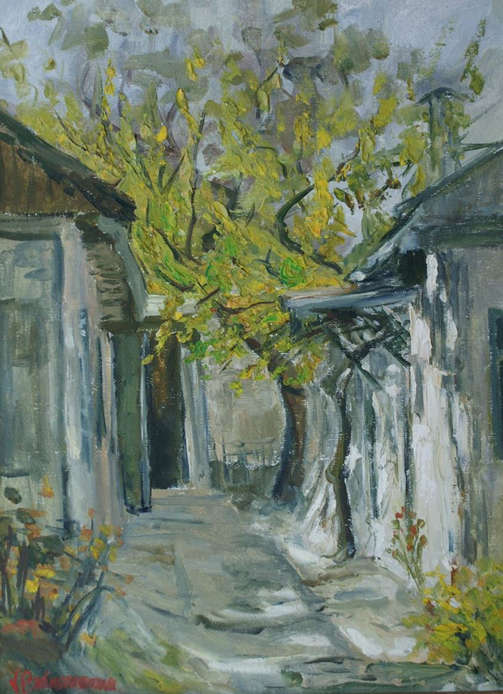 Orașul vechi, str. Sciusev, 1997, ulei, pânză pe carton, 392×500 mm.